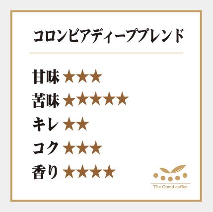 深煎りにしたコロンビアは、どっしりとした濃厚な苦みが醸し出されます。